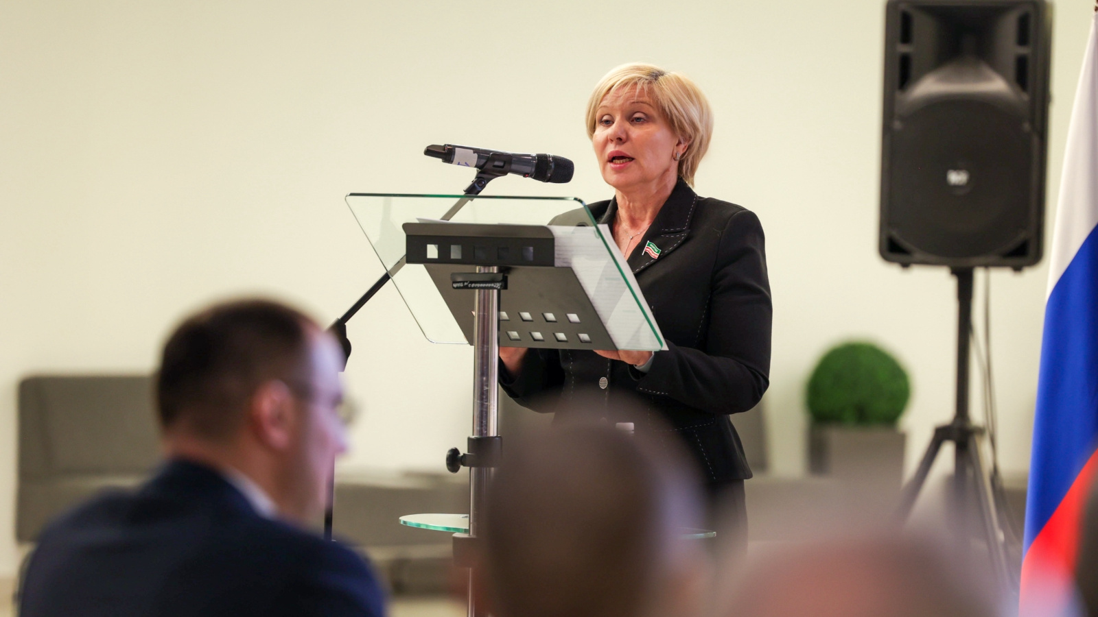 Elena Kuzmicheva, Chairperson of the Federation of Trade Unions of the Republic of Tatarstan, delivered a report during the Expert Council meeting.