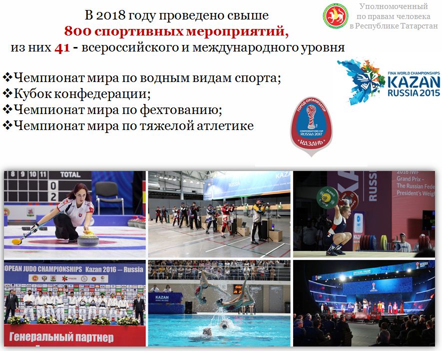 Выступление Уполномоченного по правам человека в Республике Татарстан Сарии Сабурской в рамках «круглого стола» по теме «Содействие разнообразию и созданию свободной от дискриминации среды в городах, принимающих Чемпионат мира по футболу FIFA 2018 года» было посвящено организации деятельности по противодействию и профилактике расизма и различных форм дискриминации в спорте в Республике Татарстан.