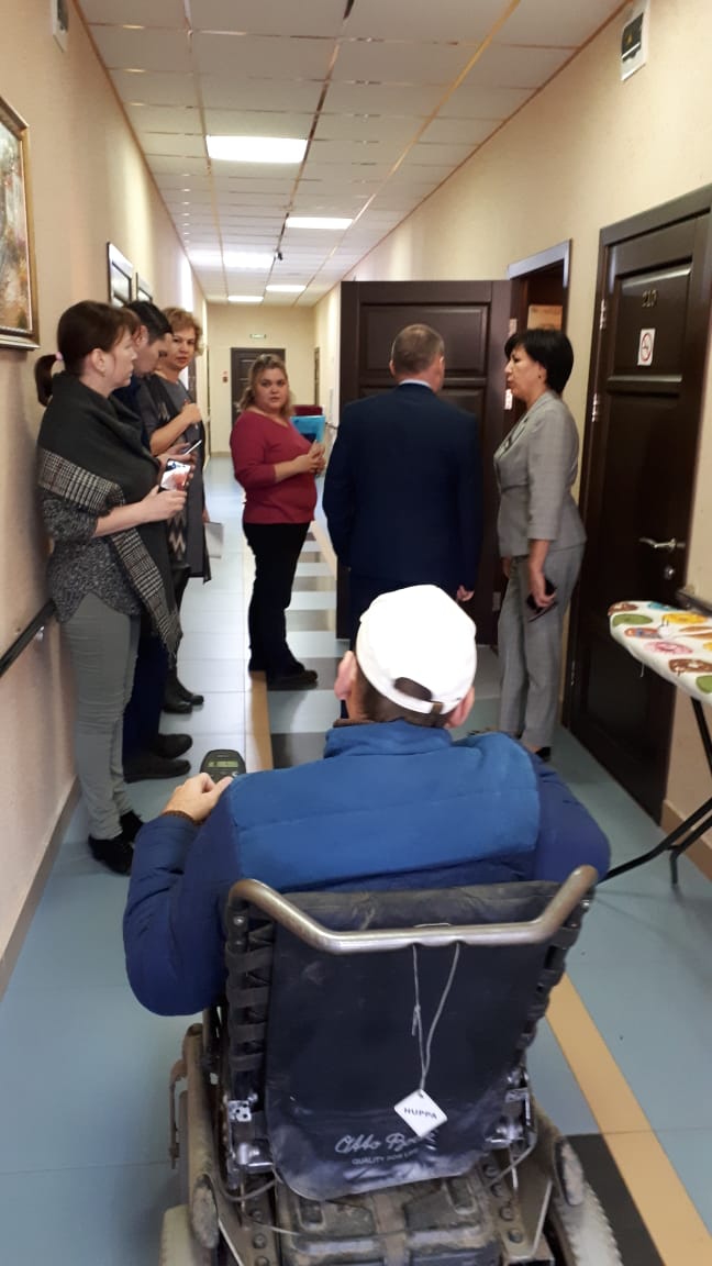 Так, проведен совместный осмотр процедурных кабинетов, сан.узлов и жилых помещений. Члены «рабочей группы» проверили, насколько здания и сооружения санатория соответствуют требованиям СНиП 35-01-2001 «Доступность зданий и сооружений для маломобильных групп населения» в части обеспечения безбарьерной среды для инвалидов-колясочников.