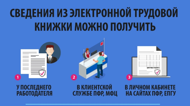 При необходимости сведения электронной трудовой книжки будут предоставляться в виде бумажной выписки. Обеспечить ее сможет работодатель (по последнему/актуальному месту работы), территориальный орган Пенсионного фонда России или МФЦ. Услуга предоставляется экстерриториально, т.е. без привязки к месту жительства или работы человека.