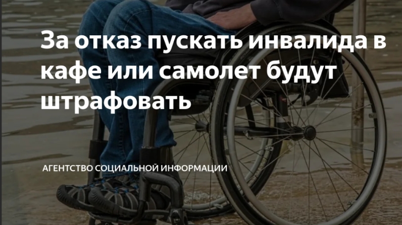 Закон вводит административную ответственность за отказ потребителю в доступе к товарам, работам и услугам по причинам, обусловленным ограничением жизнедеятельности, состоянием здоровья, возрастом.