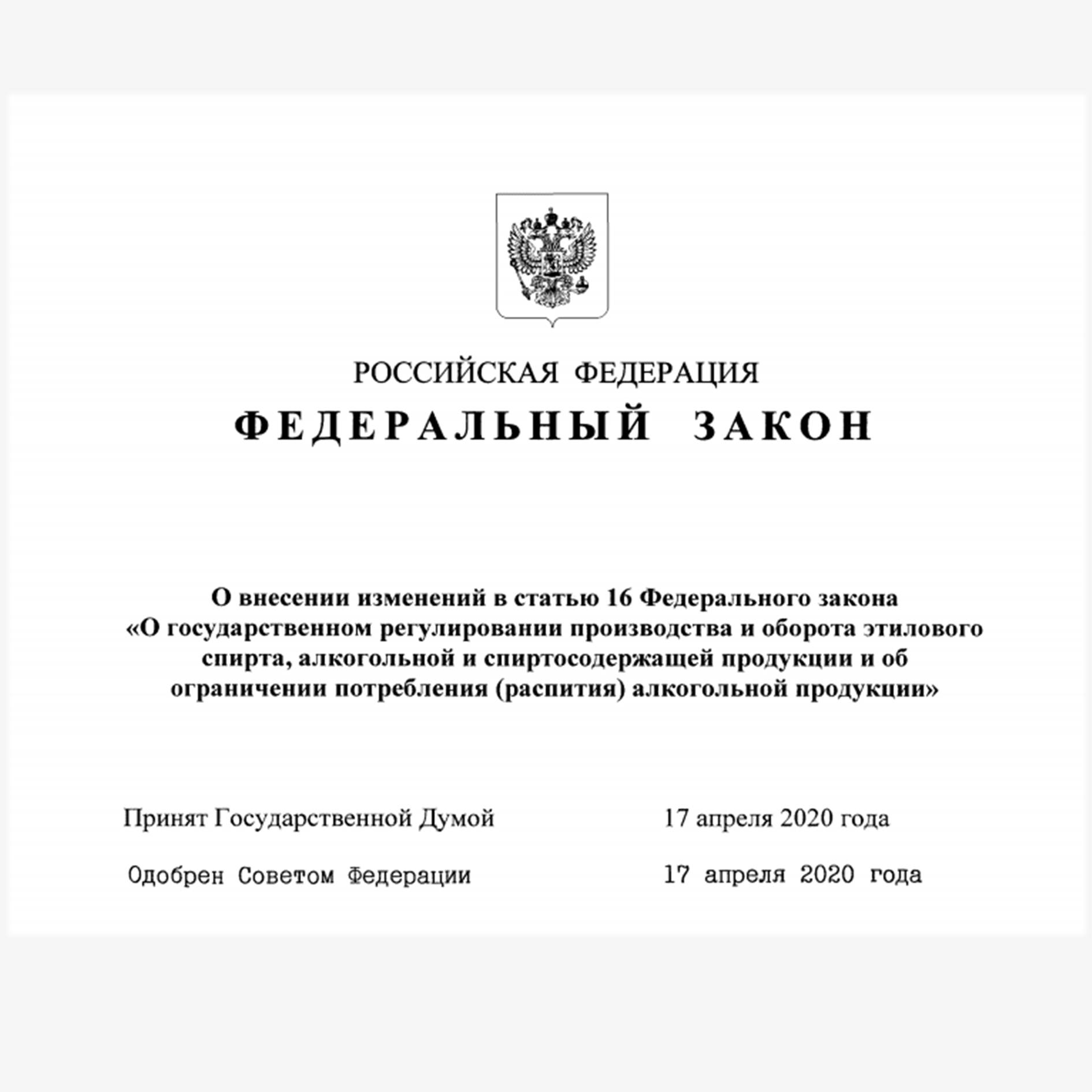 Соответствующие поправки (Федеральный закон от 24 апреля 2020 г. № 145-ФЗ) были внесены в Федеральный закон «О государственном регулировании производства и оборота этилового спирта, алкогольной и спиртосодержащей продукции». Теперь розничная продажа алкогольной продукции при оказании услуг общественного питания в объектах общественного питания, расположенных в многоквартирных домах и (или) на прилегающих к ним территориях, допускается только в случаях, если в указанных объектах общественного питания, имеется зал обслуживания посетителей общей площадью не менее 20 квадратных метров.