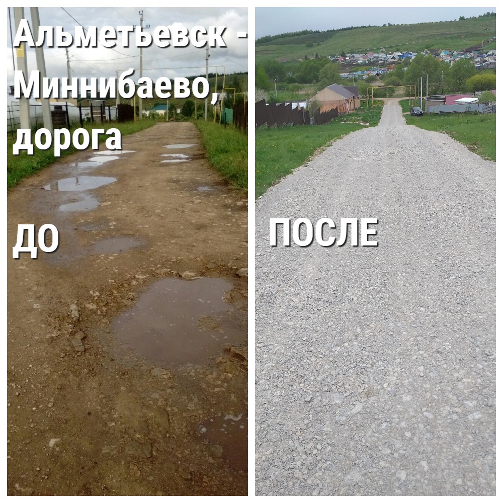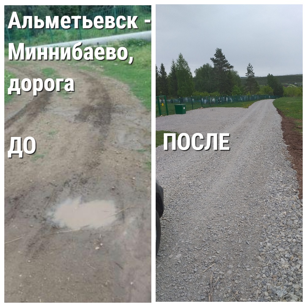 Кроме того, в Альметьевском районе были отсыпаны щебнем дороги, находящиеся в п. Березовка (№ 3169938) и с. Миннибаево (№№ 2407493, 2409646).