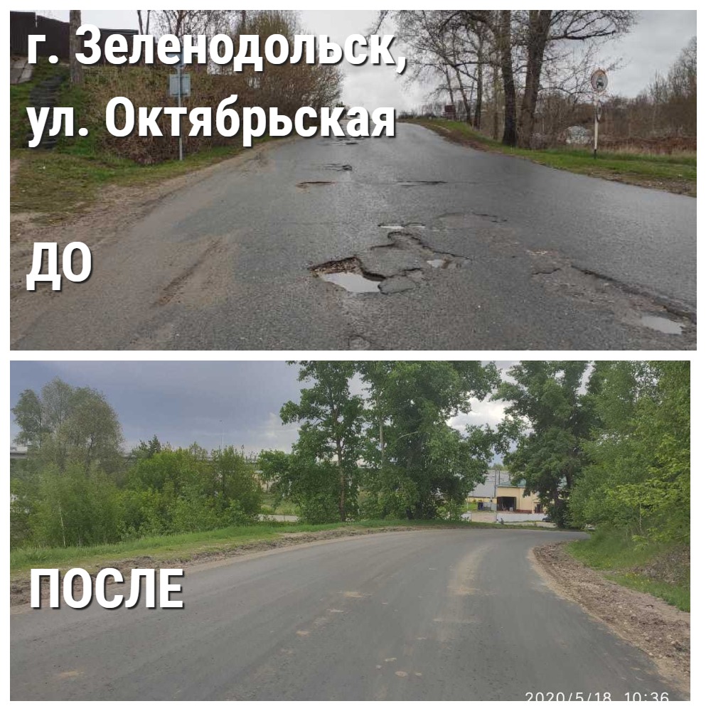 Также проведены мероприятия по ремонту дорог по ул. Октябрьской (№3416976) и ул. Вали Хазиева (№3416982) г. Зеленодольска, Колхозного переулка в. г Альметьевске (№2359850).
