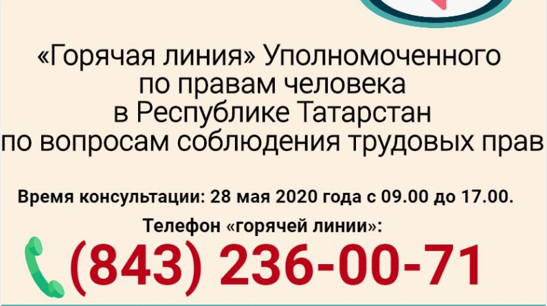 28 мая 2020 года с целью оказания правовой поддержки и обеспечения соблюдения прав граждан Уполномоченный по правам человека проводит «горячую линию» по вопросам защиты трудовых прав граждан республики.