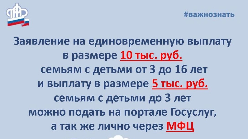 Напомним, чтобы получить выплату, достаточно до 1 октября текущего года подать заявление в личном кабинете на портале Госуслуг, а так же лично через в МФЦ.