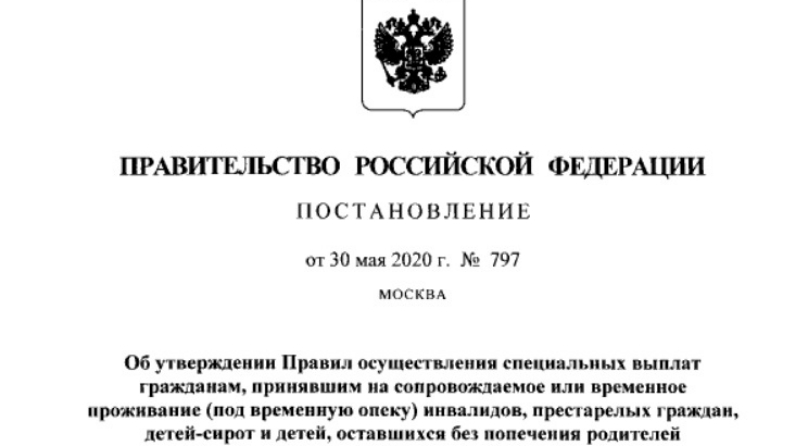 С 09.06.2020 вступили в силу Правила осуществления специальных выплат гражданам, принявшим на сопровождаемое или временное проживание (под временную опеку) инвалидов, престарелых граждан, детей-сирот и детей, оставшихся без попечения родителей, утвержденные постановлением Правительства Российской Федерации 30.05.2020 №797.