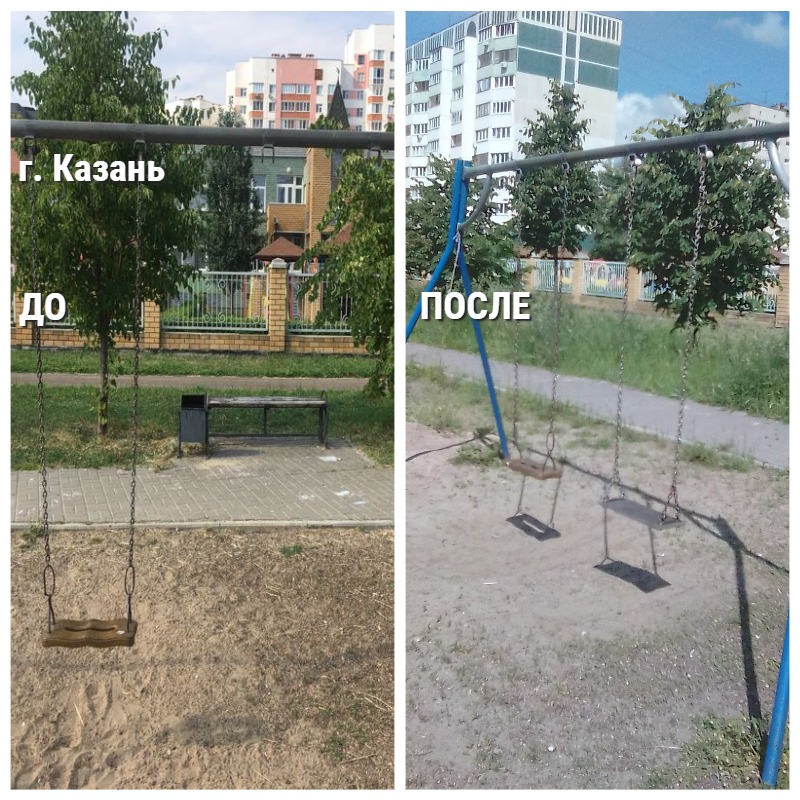 Так, например, выполнены работы по ремонту качелей в парках «Комсомолец» г.Казани (№ 3469007), в г.Набережные Челны (№ 3459104), в Алькеевском муниципальном районе (№ 3491404).
