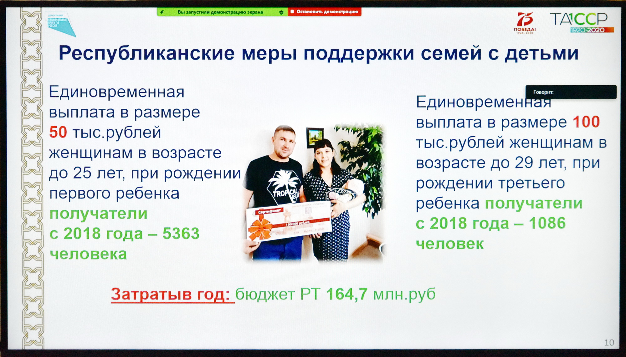 В Татарстане меры социальной поддержки семьям с детьми предоставляются на основании федерального и республиканского законодательства. В 2020 году на эти цели предусмотрено более 10,6 миллиардов рублей.