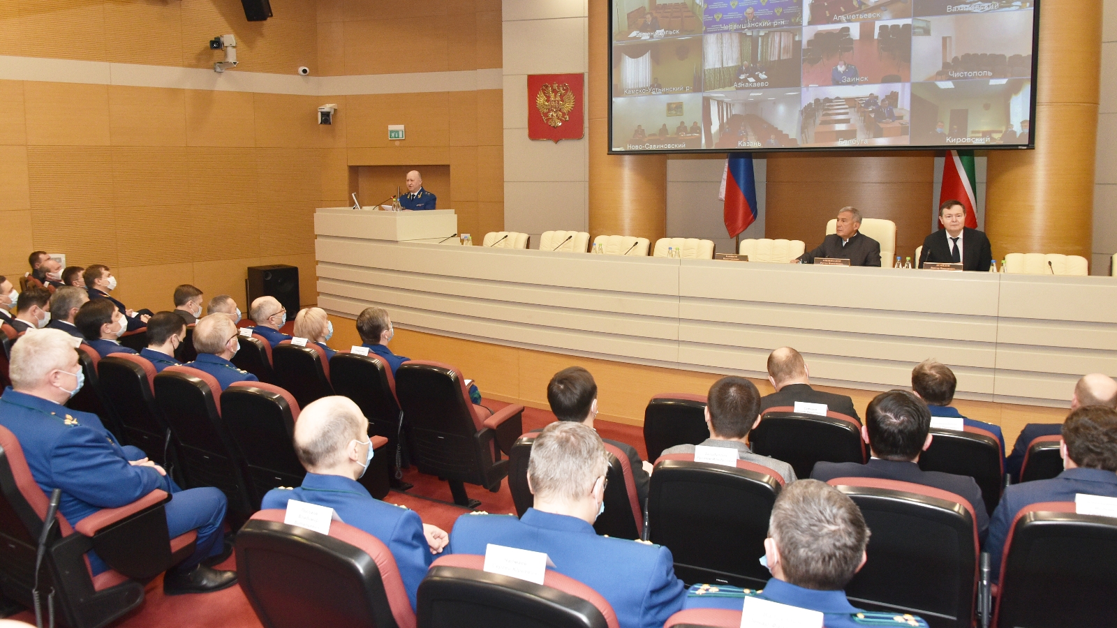 Итоги работы прокуратуры Республики Татарстан в 2020 году подвели в Доме Правительства РТ. Также были обозначены новые задачи по укреплению законности и правопорядка на 2021 год. В режиме видеоконференцсвязи к совещанию были подключены все муниципальные районы республики.