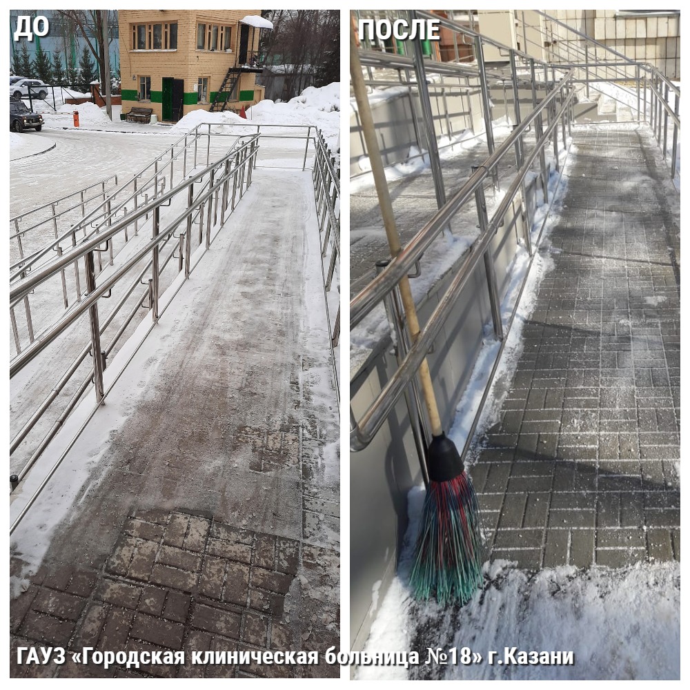 Так, в поликлинике Медсанчасти ОАО «Татнефть» и г. Альметьевска требовалась замена сидений стульев, по территории детской поликлиники ГАУЗ «Бугульминская ЦРБ» пациенты добирались к медицинскому учреждению по узкой протоптанной снежной тропинке, в ГАУЗ «Городская клиническая больница №18» г.Казани пандус для маломобильных граждан был в наледи.