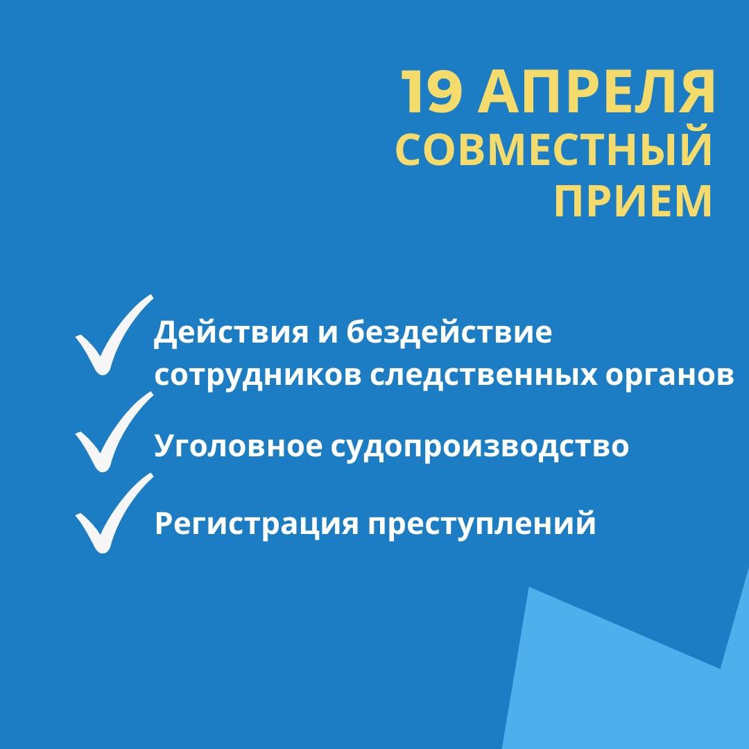19 апреля 2021 года состоится совместный прием граждан Уполномоченным по правам человека в Республике Татарстан и Руководителем следственного управления Следственного комитета Российской Федерации по Республике Татарстан.