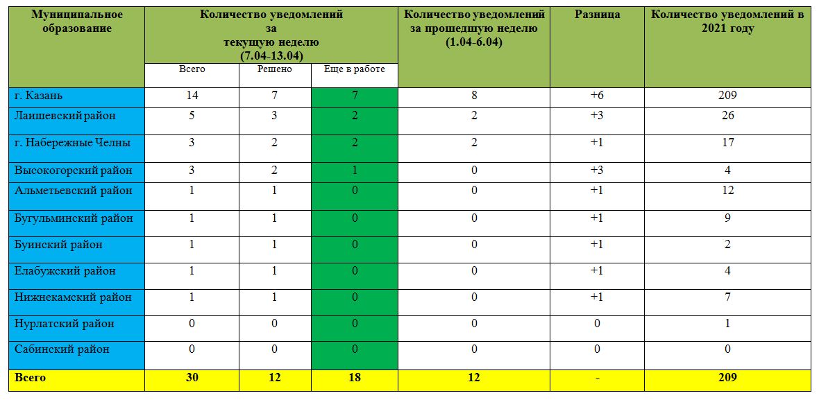 1. по г. Казани – 14 уведомлений (на прошлой неделе – 7);