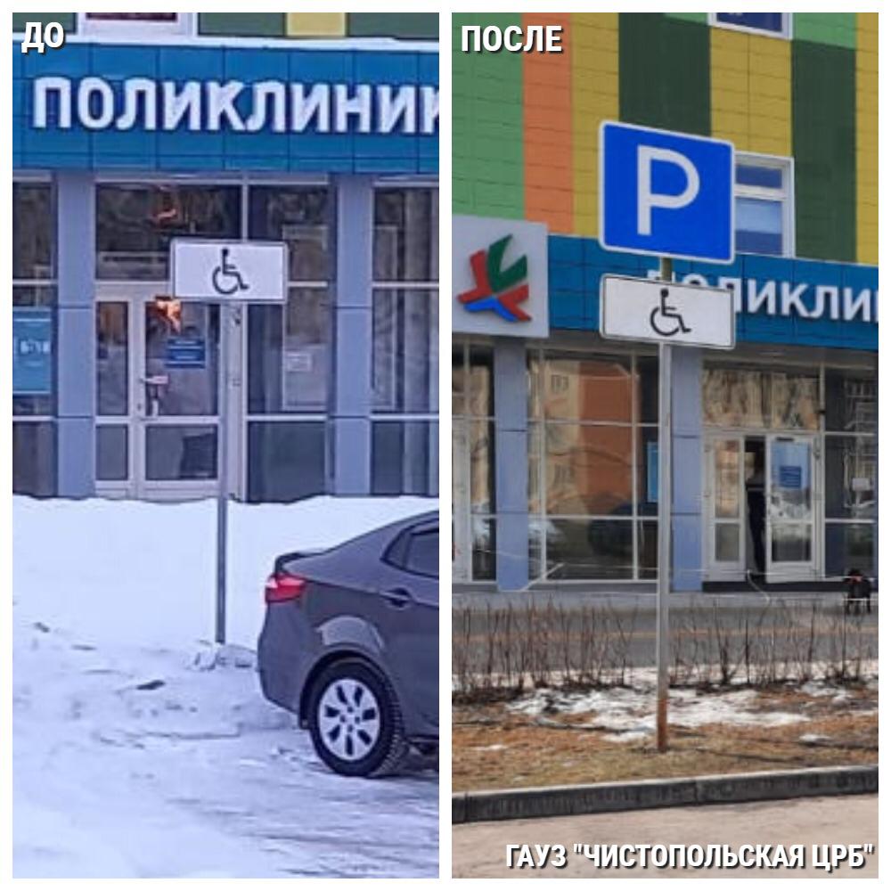 На парковке, расположенной на территории ГАУЗ «Чистопольская ЦРБ» восстановлен дорожный знак «Парковочное место», предназначенный для обозначения доступной парковки для инвалидов (№3886022). (1).jpeg)