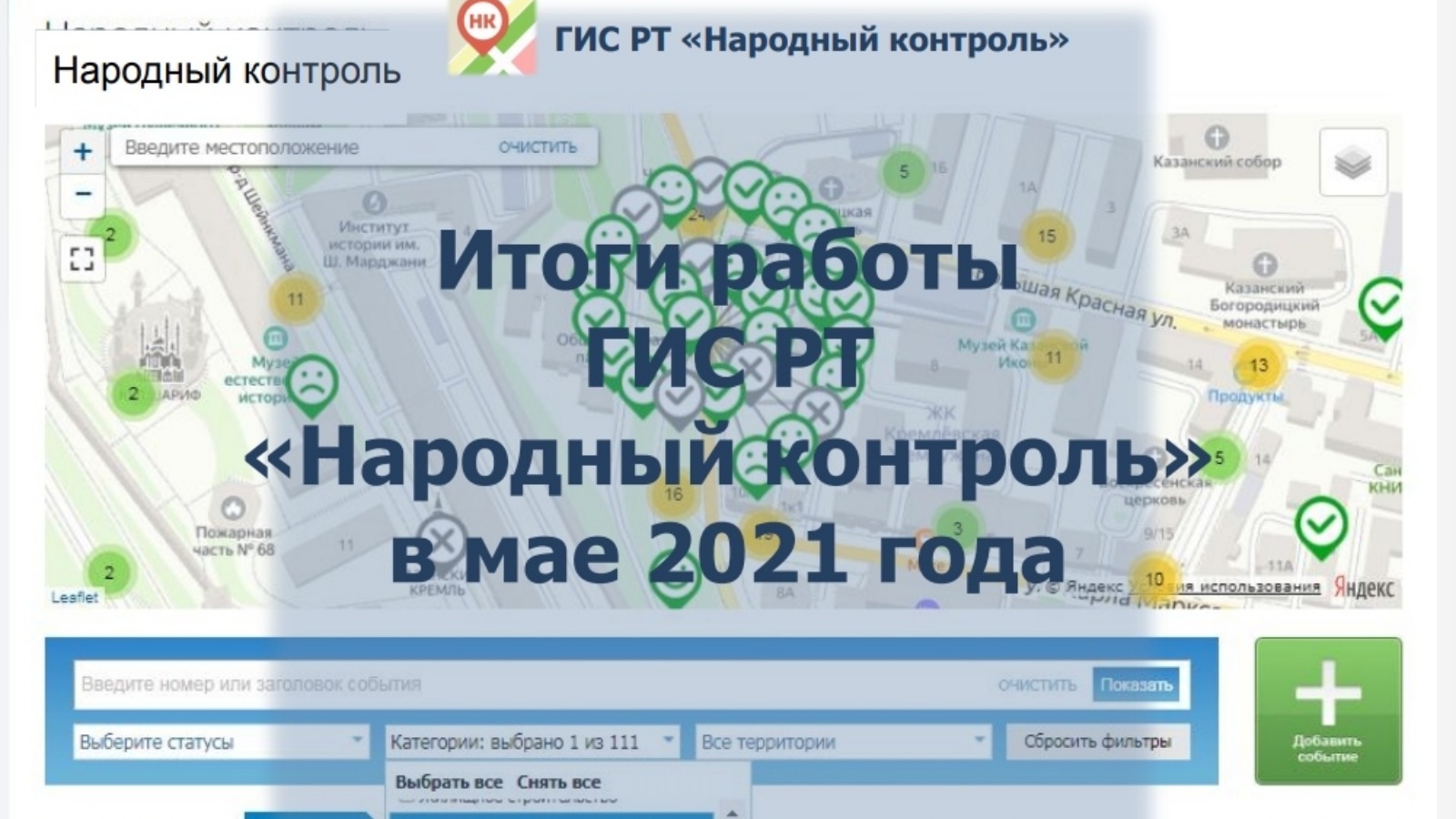 В течение всего месяца мы еженедельно рассказывали вам о работе системы и пришло время подвести итоги работы ГИС РТ «Народный контроль» за май 2021 года: