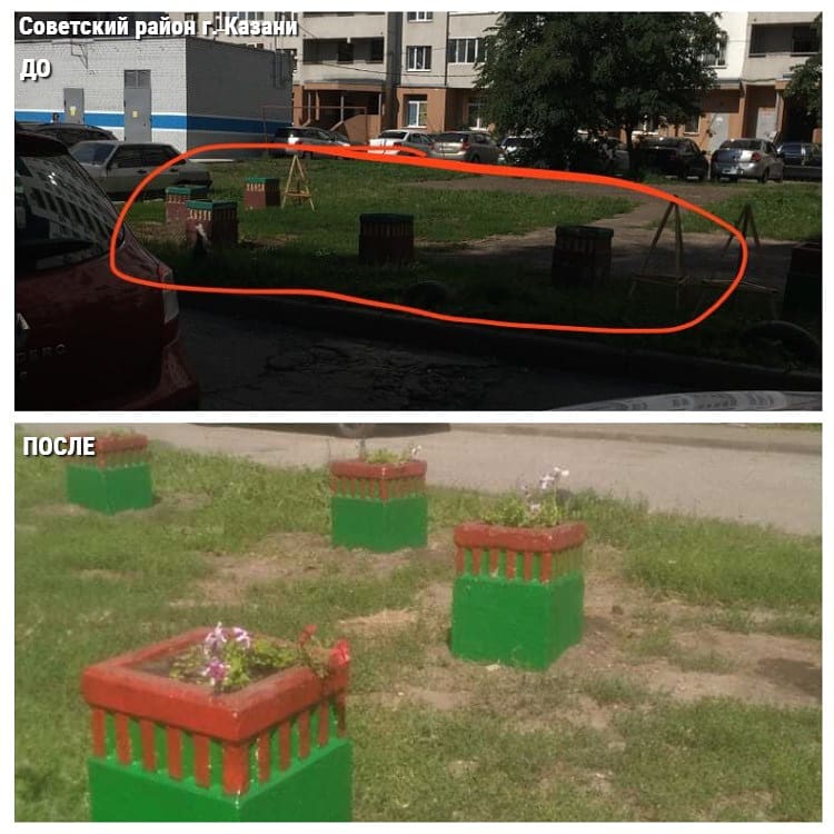 Администрацией Советского района Исполкома г. Казани проведены мероприятия по покраске цветочных клумб возле жилого дома по проспекту Победы г. Казани (№ 4187995).