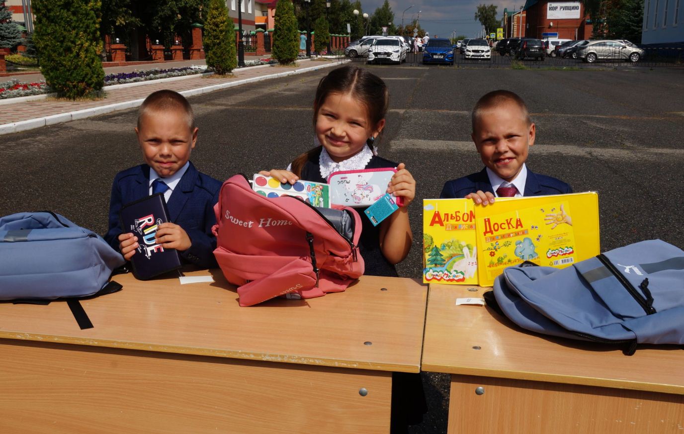 По всему району 210 будущих первоклассников получают портфели и школьные принадлежности.