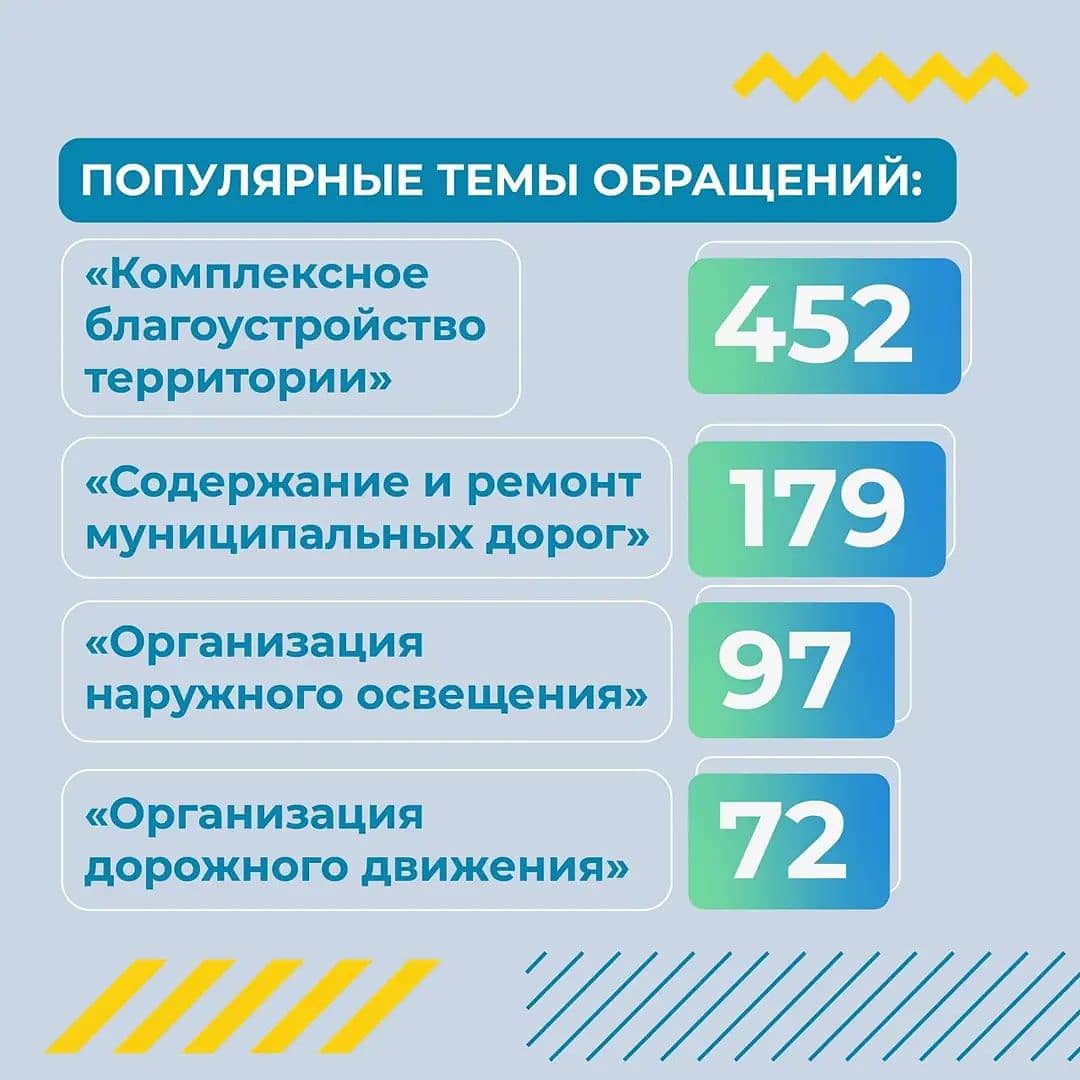 Самые популярные темы – «Комплексное благоустройство территорий», «Содержание и ремонт муниципальных дорог», «Организация наружного освещения».
