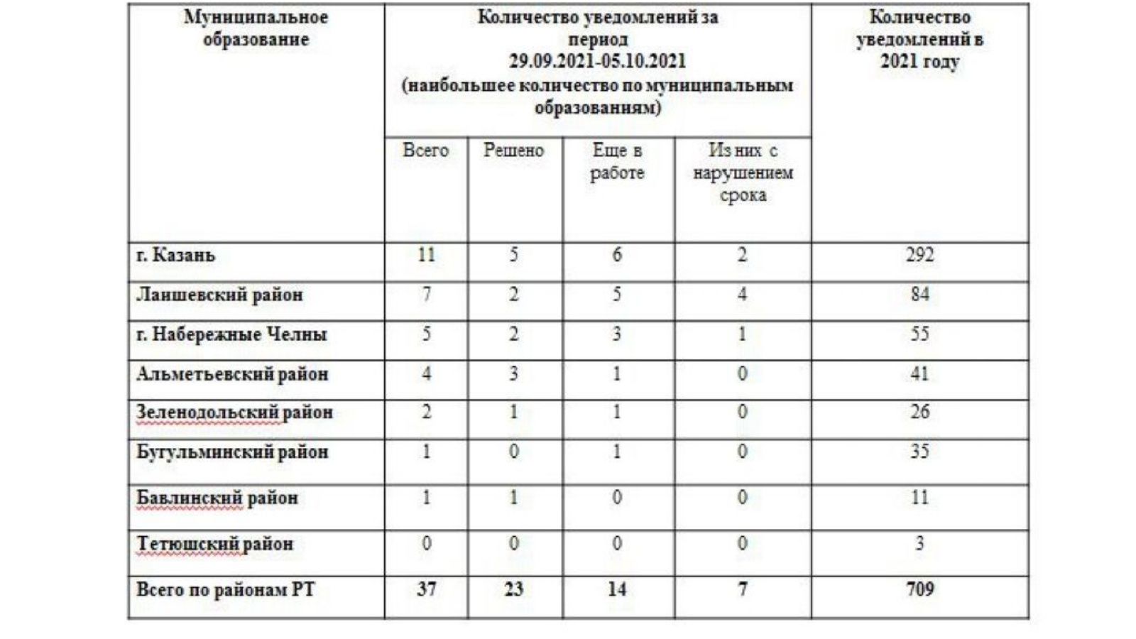 1. по г. Казани – 11 уведомлений;