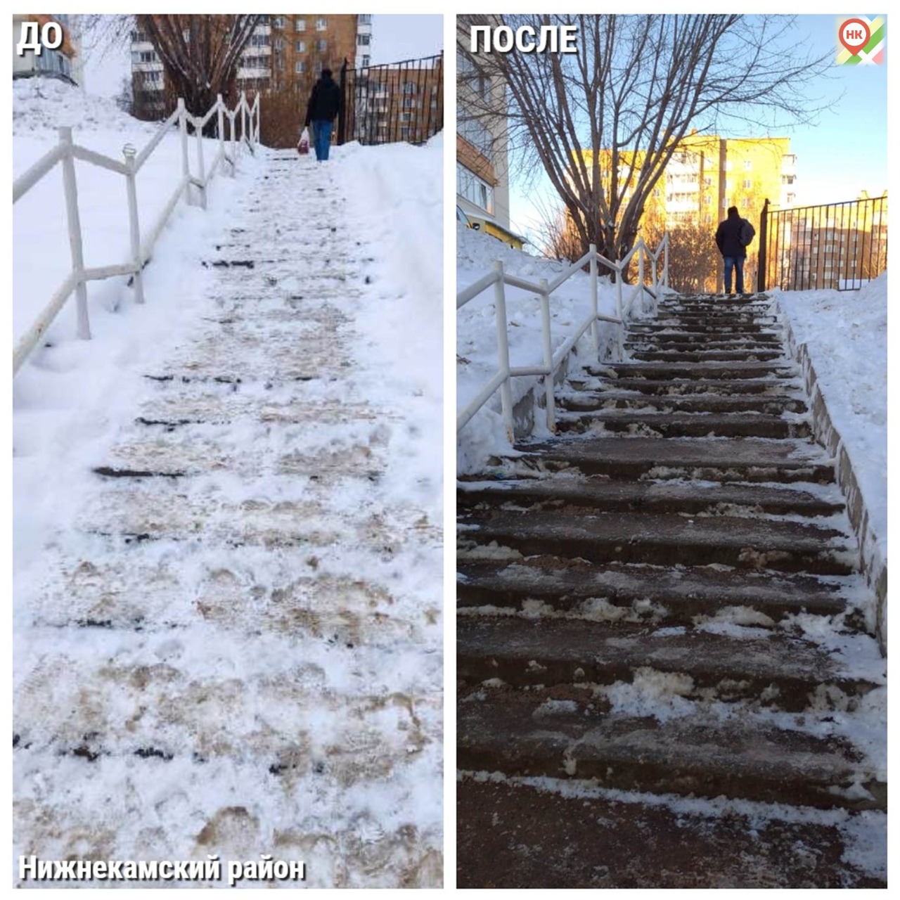 Исполнительным комитетом Нижнекамского района в целях обеспечения безопасности были проведены мероприятия по очистке лестницы по ул. Гагарина г. Нижнекамска (№ 4493571)