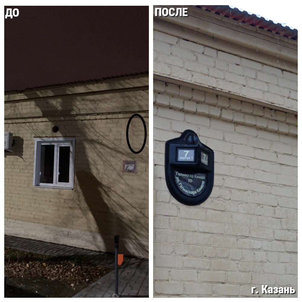 Администрацией Вахитовского и Приволжского районов Казани выполнены работы по установке адресного аншлага по ул. Галиаскара Камала (№ 4404130).