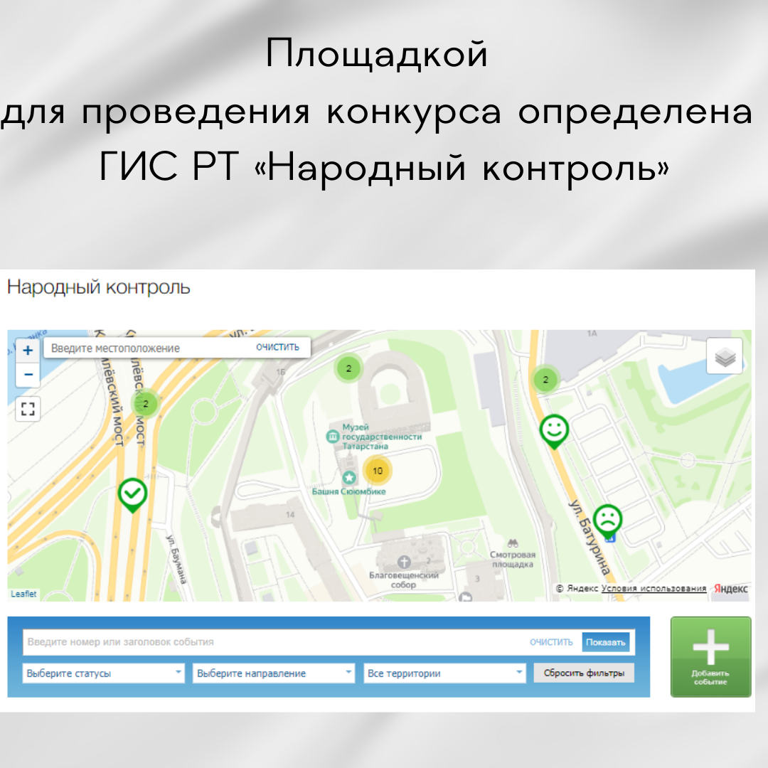 Как и ранее, площадкой для проведения конкурса определена ГИС РТ «Народный контроль». Его участником автоматически становится каждый, кто оставит свое уведомление в категории «Ошибки в названиях и надписях».