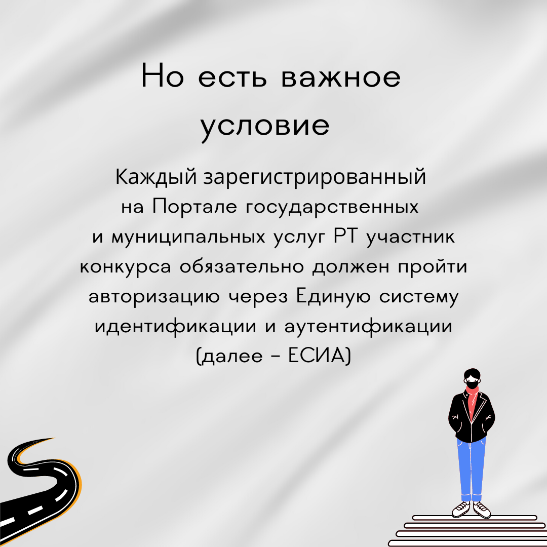 Но есть важное условие – каждый зарегистрированный на Портале государственных и муниципальных услуг РТ участник конкурса обязательно должен пройти авторизацию через Единую систему идентификации и аутентификации (далее – ЕСИА).