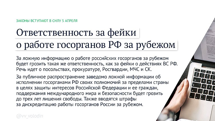 Ответственность за фейки о работе госорганов РФ за рубежом