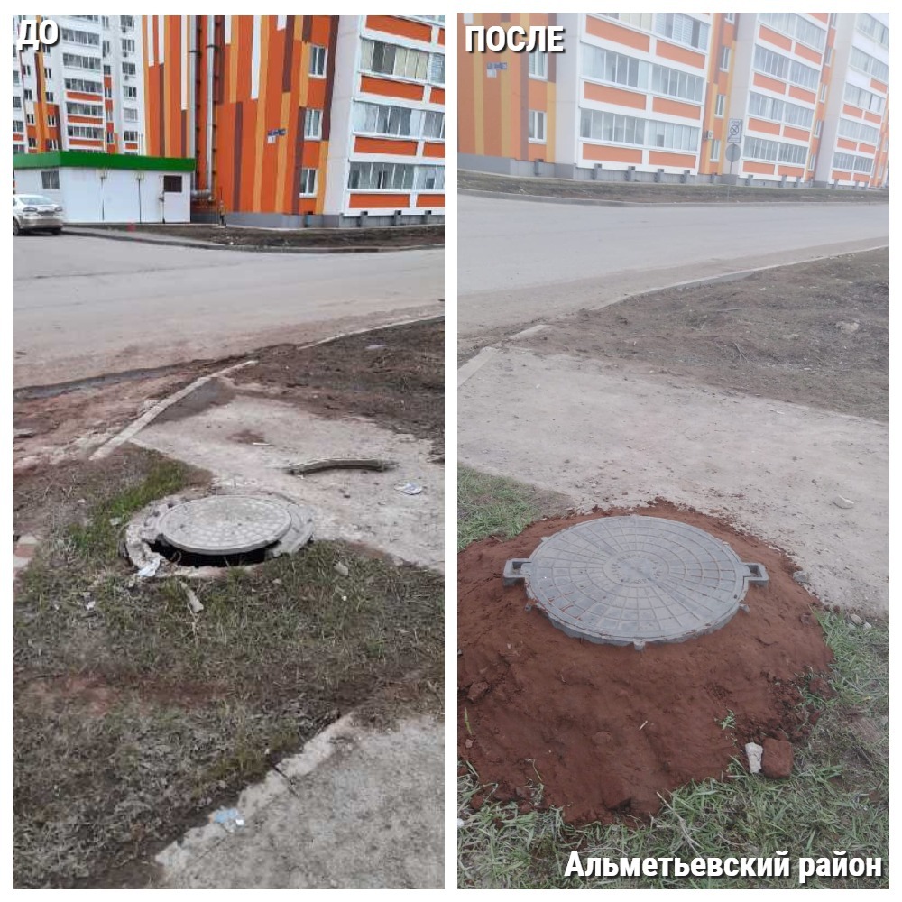 Исполкомом Альметьевского района отремонтирована крышка люка по ул. Рината Галеева (№ 4806624).
