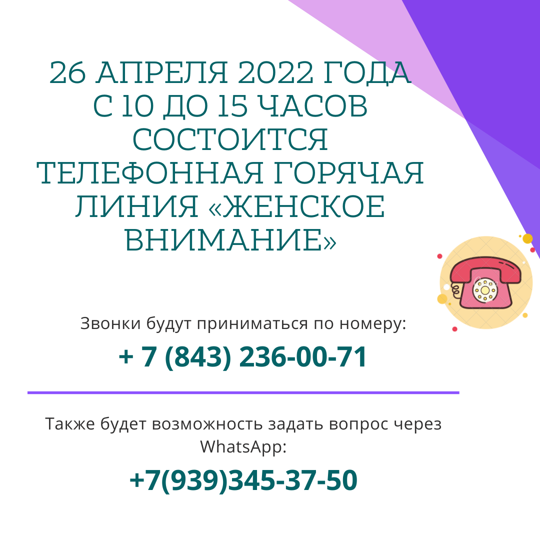 Телефоны горячей линии: 8(843) 236-00-71, 89393453750 (для вопросов в WhatsApp).
