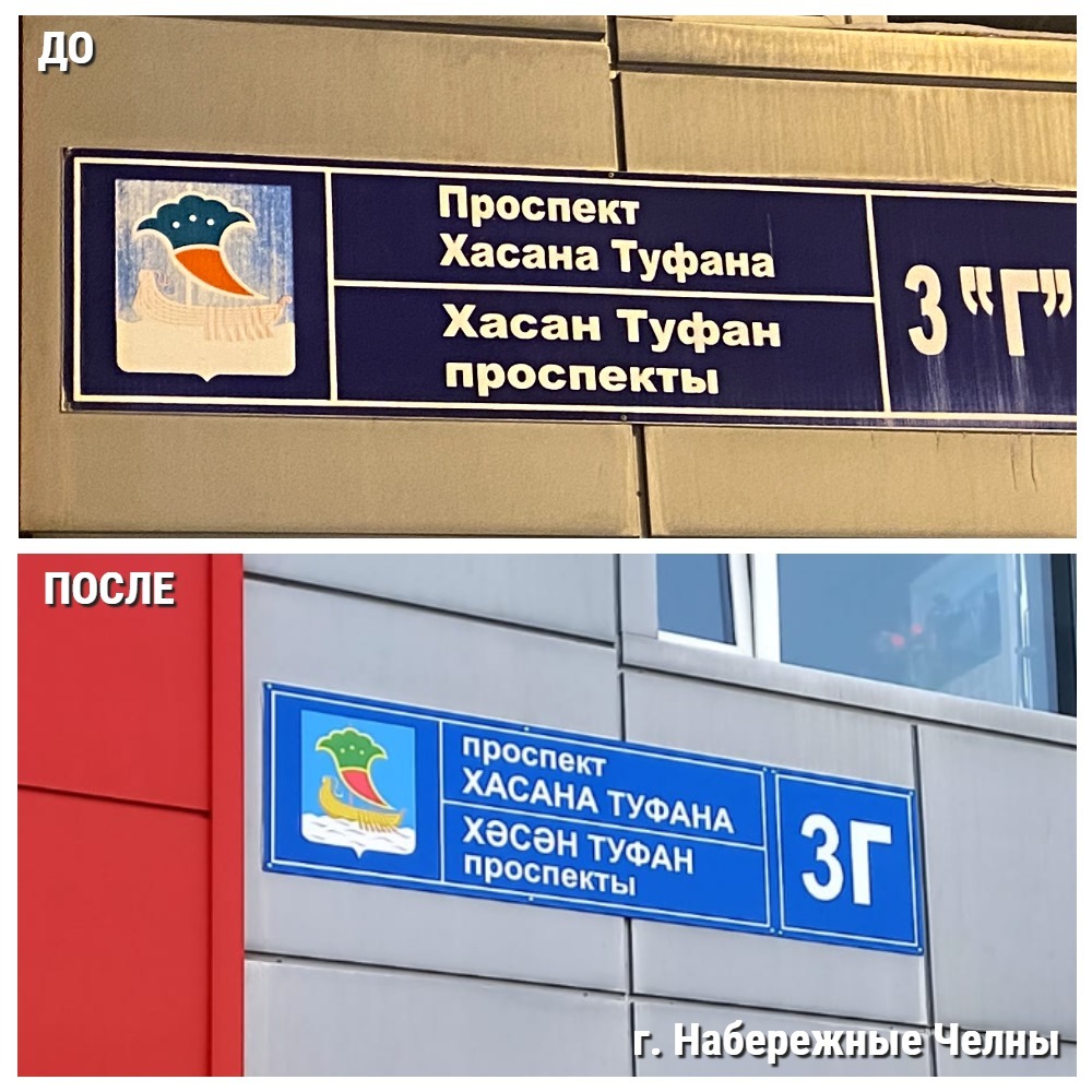 Исполнительным комитетом г. Набережные Челны исправлена ошибка, допущенная в названии улицы на татарском языке на аншлаге жилого дома по ул. Проспект Хасана Туфана (№ 4577315);