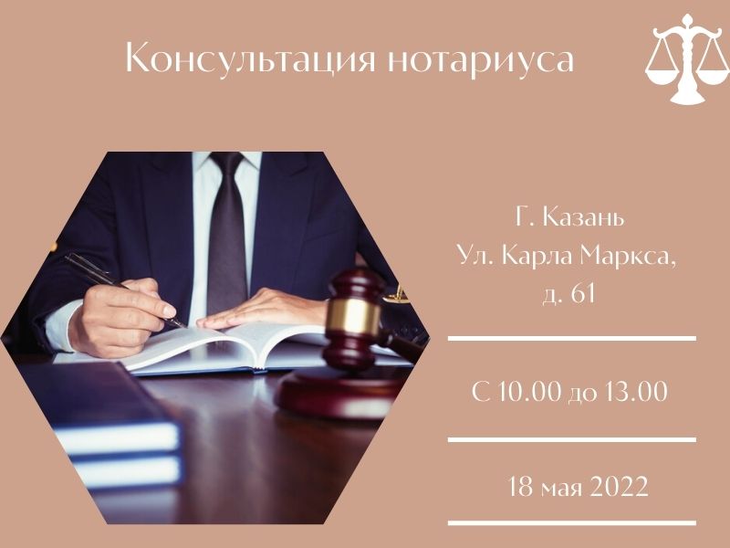 18 мая 2022 года будет принимать нотариус.