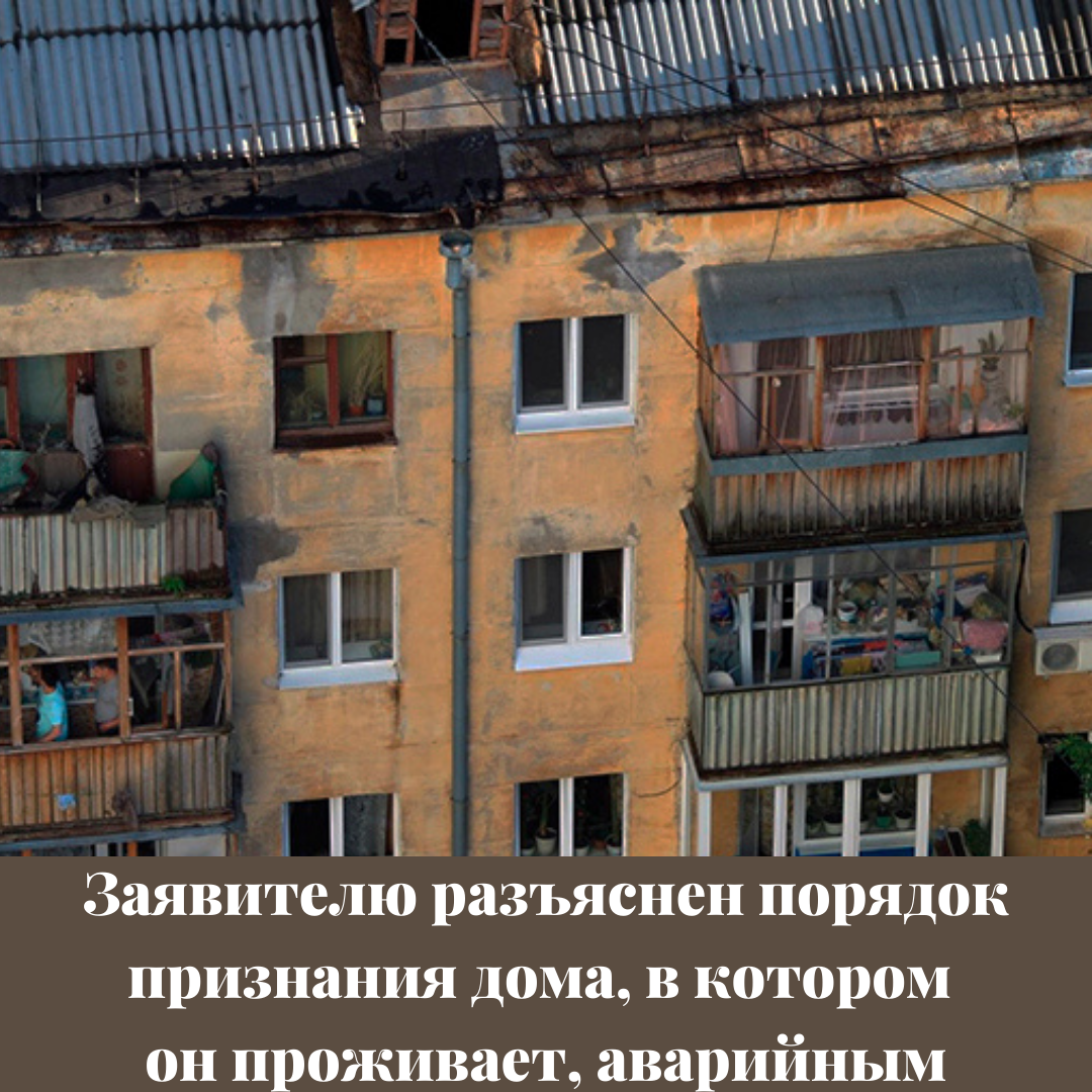 Указанное сообщение было направлено для рассмотрения в Исполком Нурлатского района. По итогам рассмотрения сообщения гражданину были даны разъяснения о том, что оценка и обследование многоквартирного дома в целях признания его аварийным и подлежащим сносу или реконструкции осуществляется межведомственной комиссией в случае получения заявлений от всех собственников помещений в многоквартирном доме.