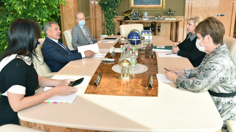 Россия Федерациясендә Кеше хокуклары буенча вәкаләтле вәкил Татьяна Москалькова Татарстан Президенты Рөстәм Миңнеханов белән очрашты.