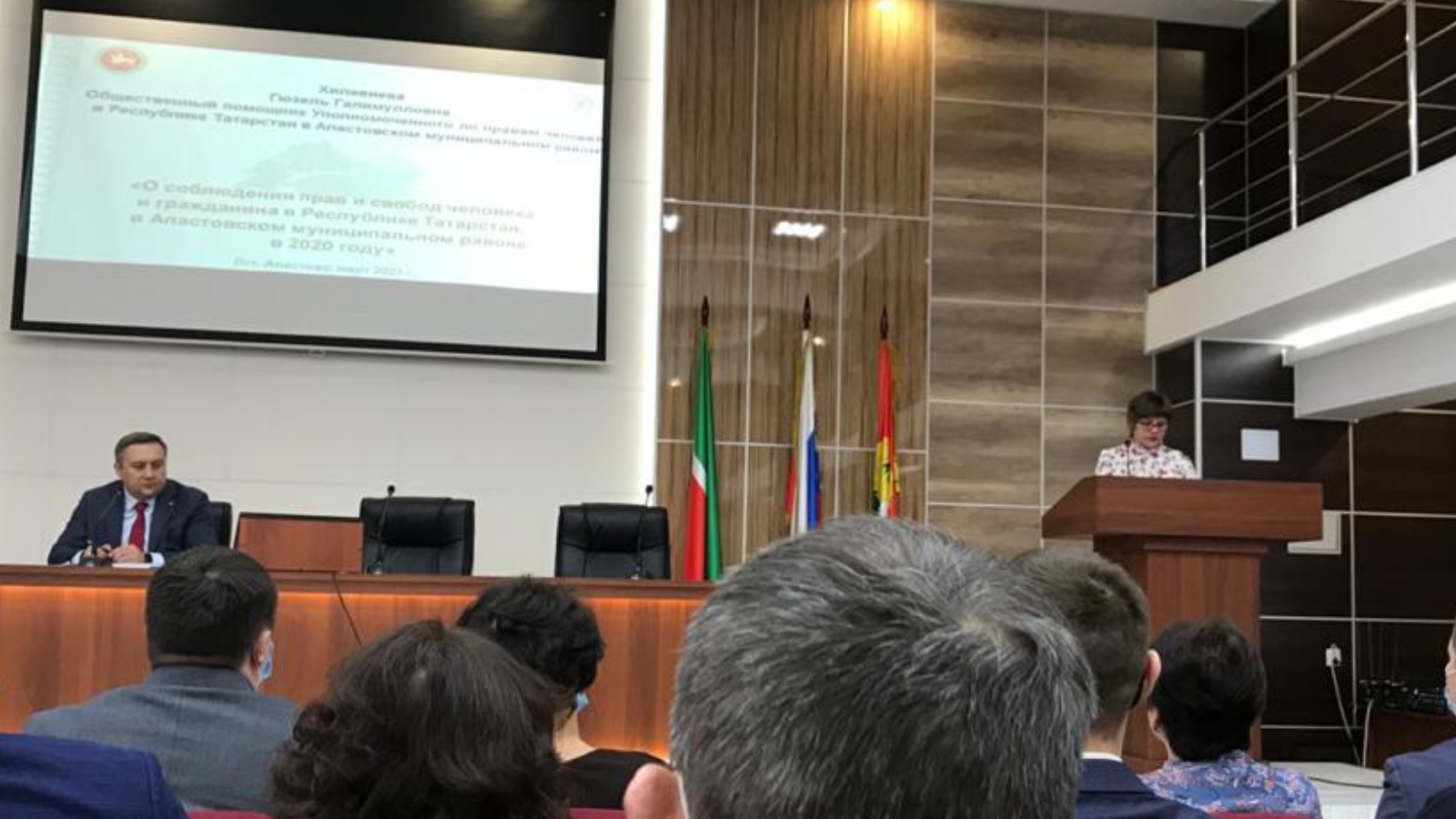 Татарстан Республикасында Кеше хокуклары буенча вәкаләтле вәкилнең Апас районындагы җәмәгатьчелек ярдәмчесе Хилавиева Гүзәл Галимулла кызы “2020 елда Татарстан Республикасында һәм Апас муниципаль районында кеше һәм граждан хокукларын һәм ирекләрен саклау турында” доклад белән чыгыш ясады.