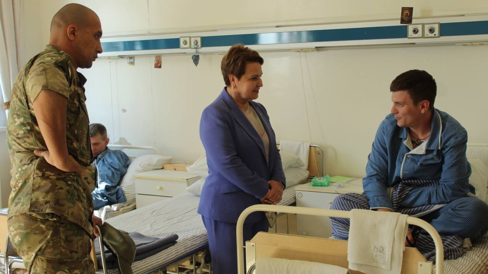Бүгенге көн көн тәртибенең беренче пункты хәрби госпитальгә бару булды, анда хәрби-табиблык комиссиясе кысаларында махсус хәрби операциянең хәрби бурычларын үтәү барышында яраланган хәрбиләр дәвалана һәм тикшерелә. Хәзерге вакытта Татарстаннан өч егет әлеге госпитальдә ята.